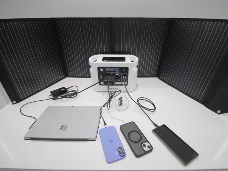 POWER BOXはご自宅、オフィス、外出先など使用したいところで太陽光があればいつでも使用できるモバイルソーラー蓄電池です。